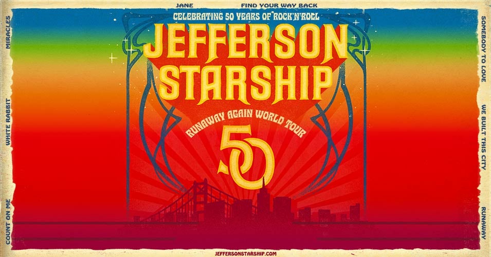 One of the most successful arena rock groups of the 70s and 80s, earning 3 platinum and 8 gold records, as well as numerous Top 40 singles, Jefferson Starship broke onto the scene with a unique fusion of psychedelic and progressive rock. Praised for their electrifying performances and innovative sound, Jefferson Starship has captivated audiences with their iconic music and stage presence for 50 years. With countless chart-topping hits to their name, including “Jane,” “Miracles, “Find Your Way Back” and “Nothing’s Gonna Stop Us Now,” the group has stood the test of time and left their mark on the psychedelic rock genre. Their songs are timeless classics, resonating with fans for multiple generations.